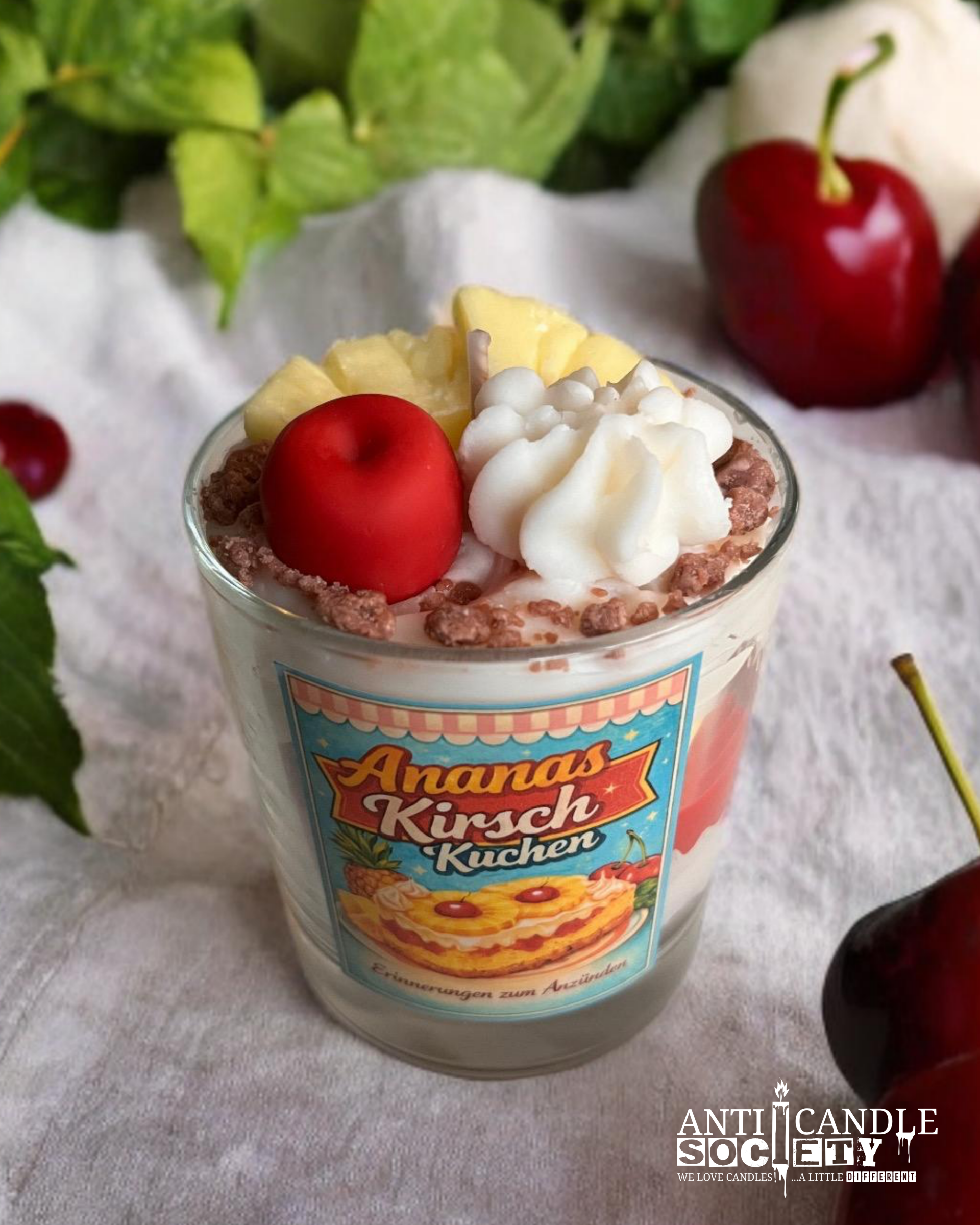 Sieht aus wie ein Stück frischer Ananas-Kirsch-Kuchen mit saftigen Früchten und süßer Glasur und duftet genauso fruchtig und sommerlich, wie ein Kuchen vom Blech auf dem Garten-Kaffeetisch.